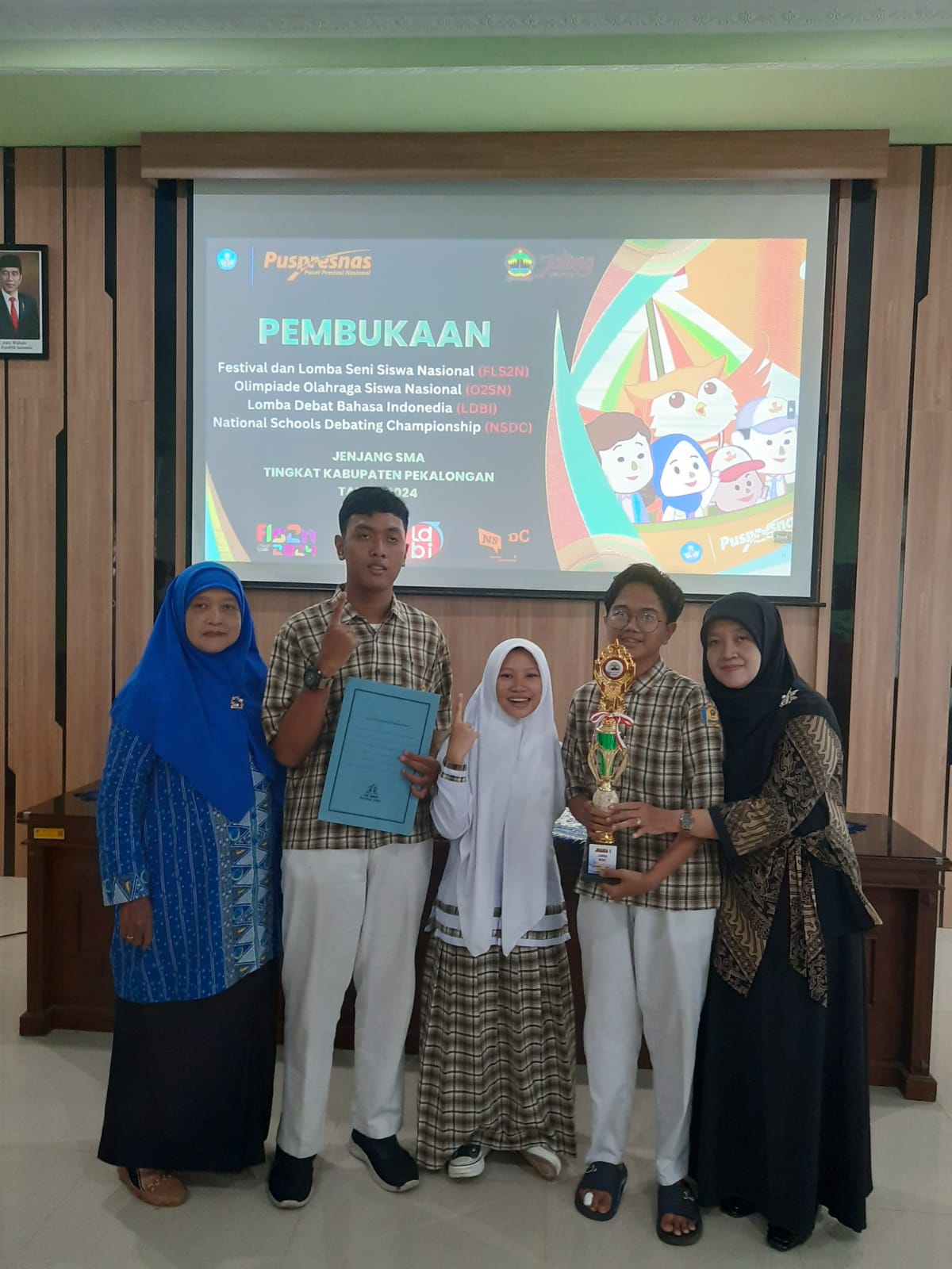 PEKALONGAN - Tim Debat Bahasa Inggris SMA Muhammadiyah 1 Pekajangan Pekalongan (SMUHI) berhasil meraih juara 1 pada lomba debat National School Debating Championship ( NSDC ) TINGKAT KABUPATEN TAHUN 2024 yang diselenggarakan oleh MGMP bahasa Inggris SMA se-kabupaten Pekalongan.